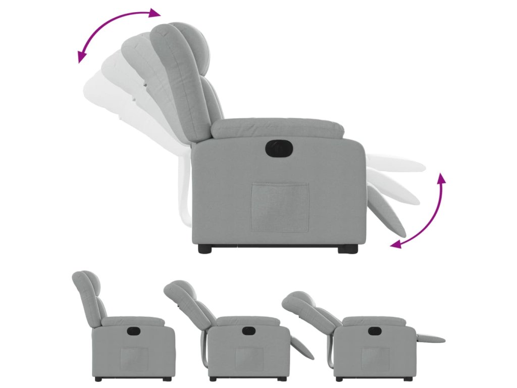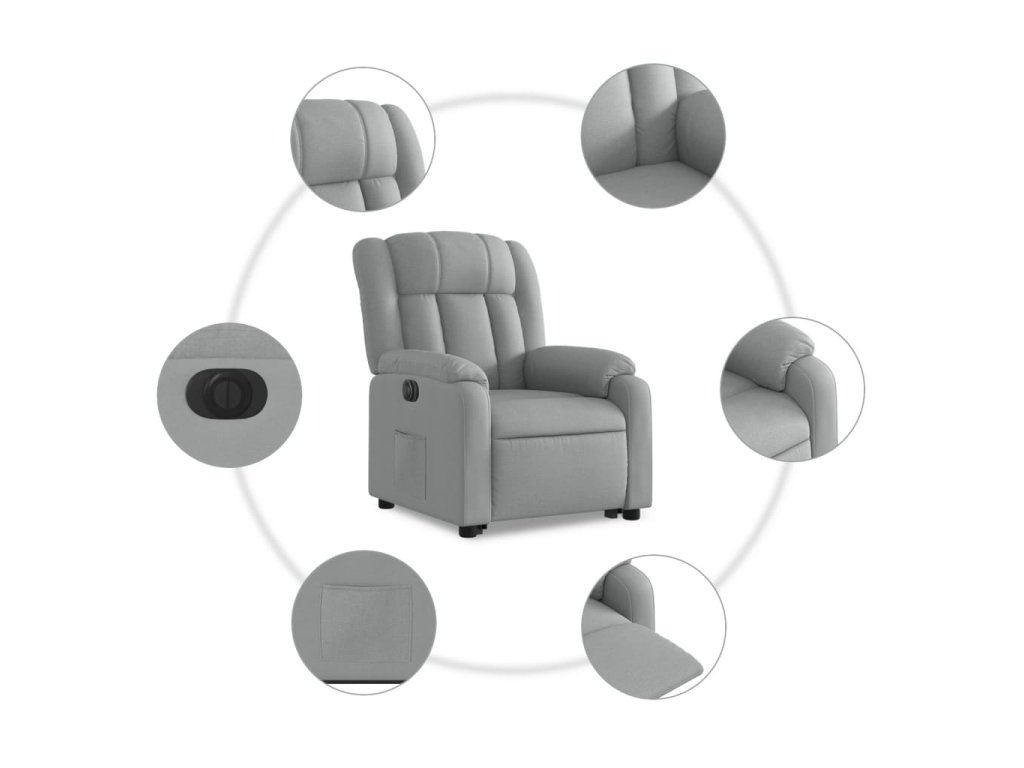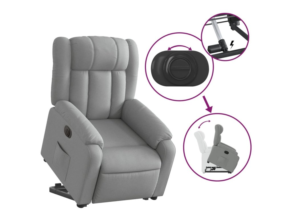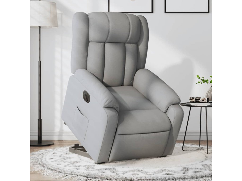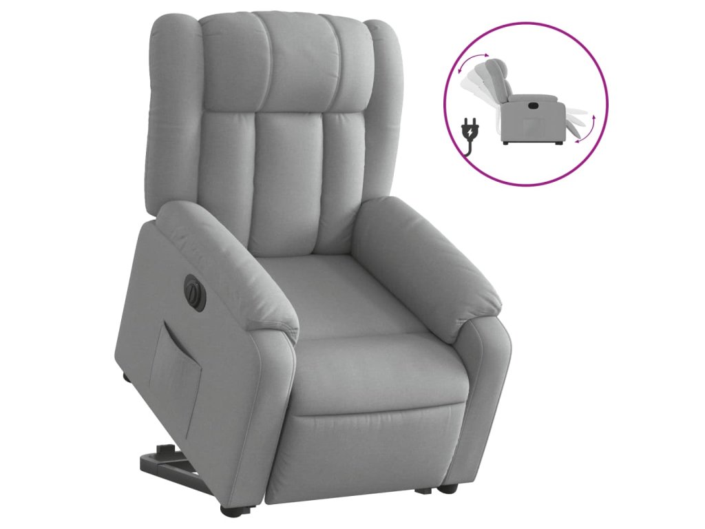 Elektrické zvedací polohovací křeslo světle šedé textil 3205340