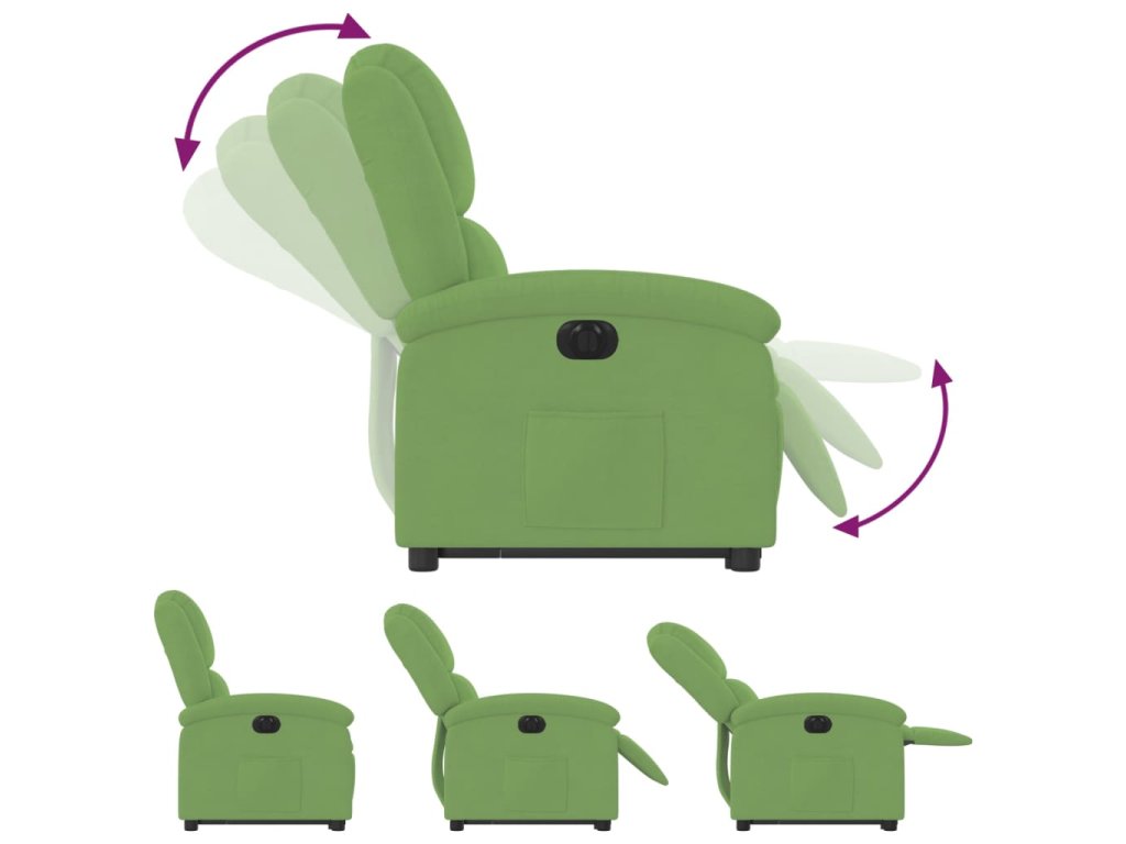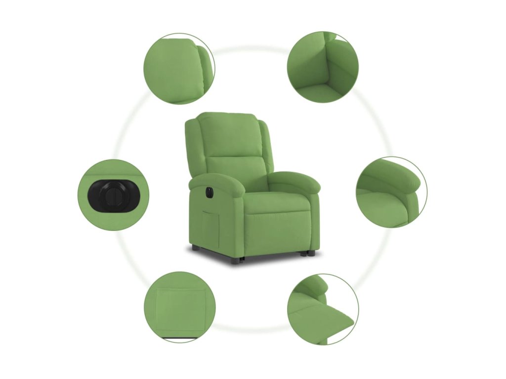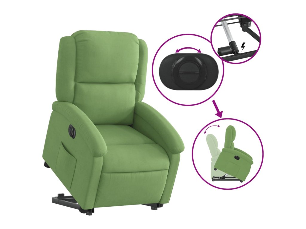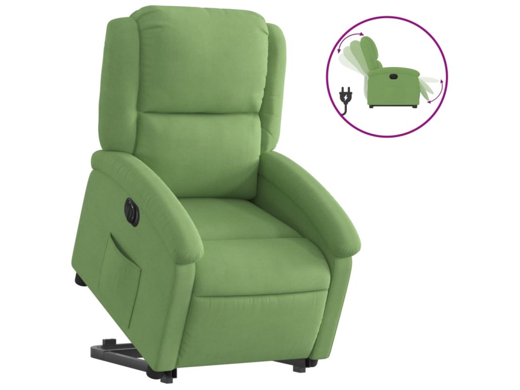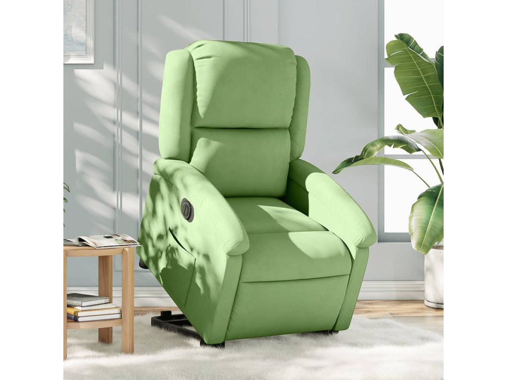 Elektrické zvedací polohovací křeslo světle zelené samet 3204325