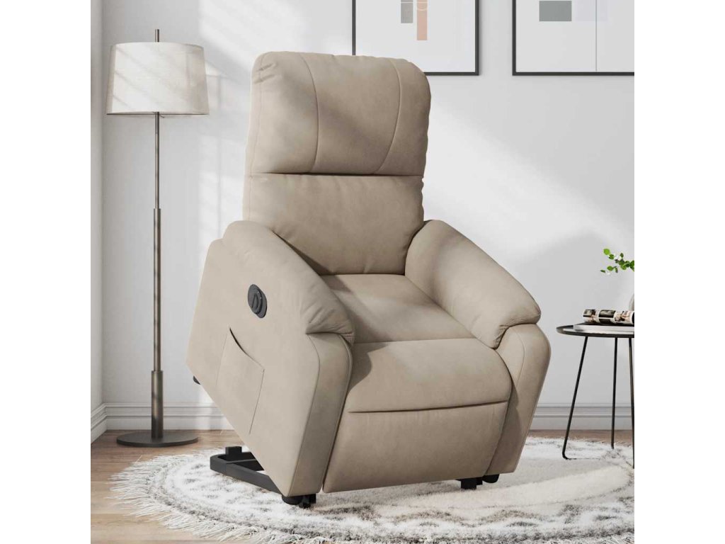 Elektrické zvedací polohovací křeslo taupe látka z mikrovlákna 3204943