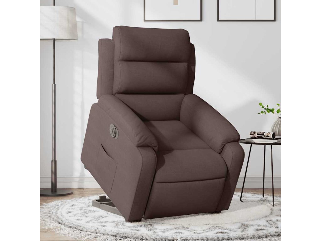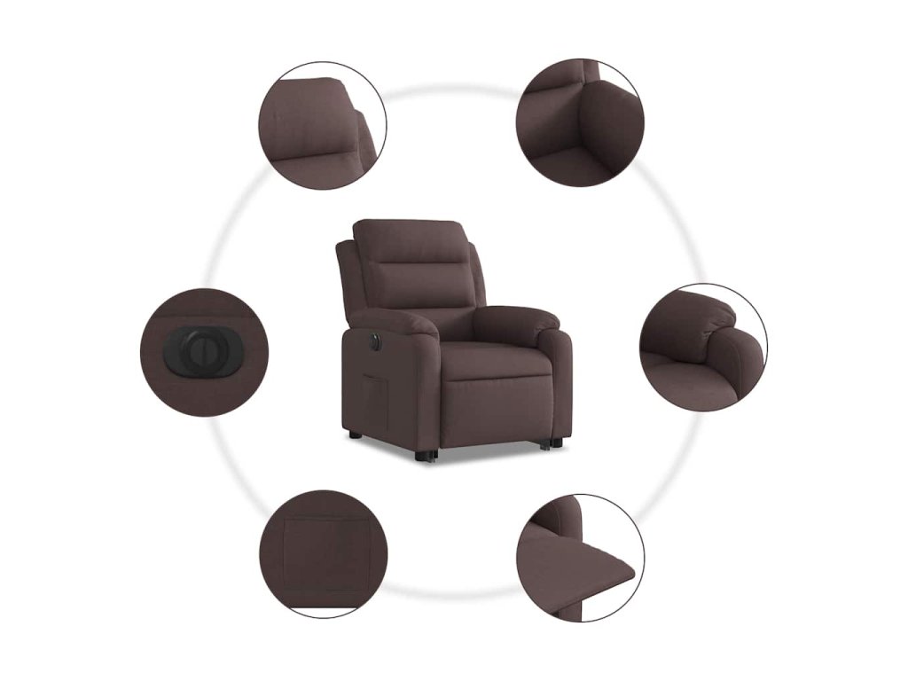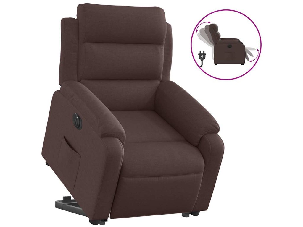 Elektrické zvedací polohovací křeslo tmavě hnědé textil 3205009