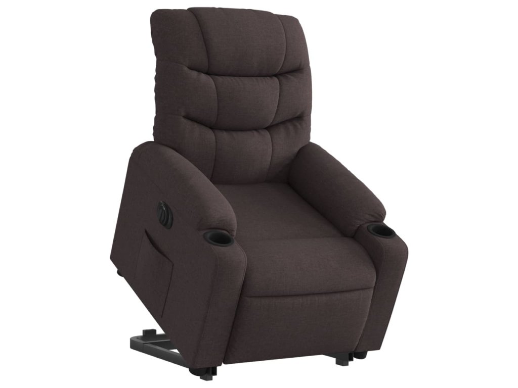 Elektrické zvedací polohovací křeslo tmavě hnědé textil 3206668