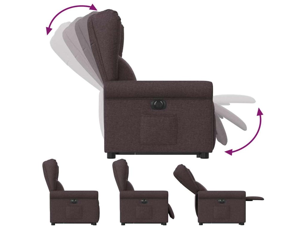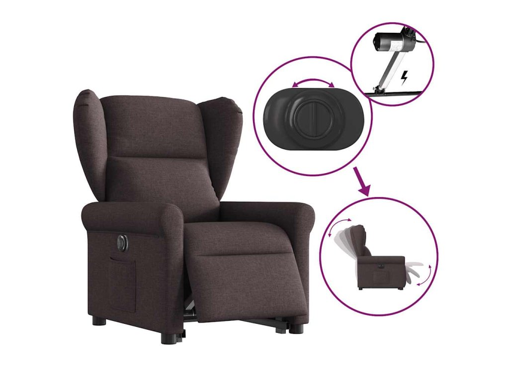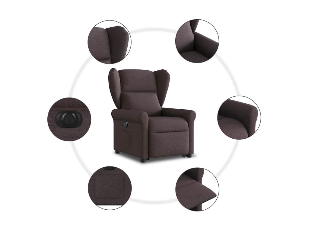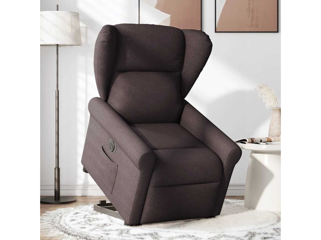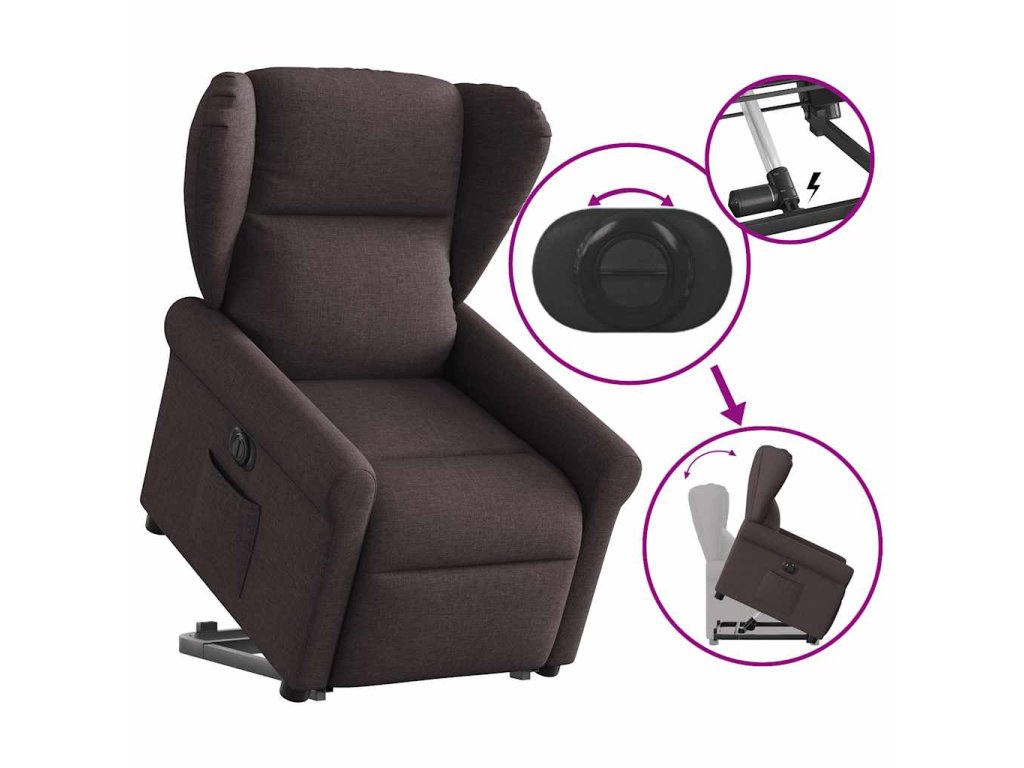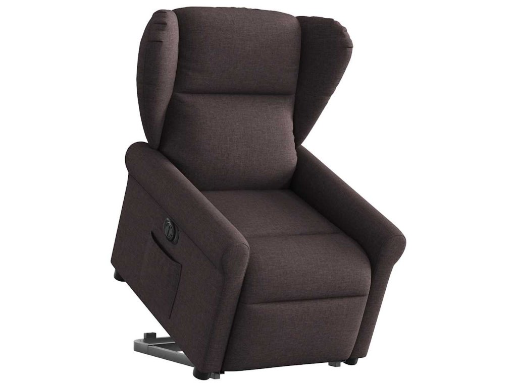 Elektrické zvedací polohovací křeslo tmavě hnědé textil 3303399