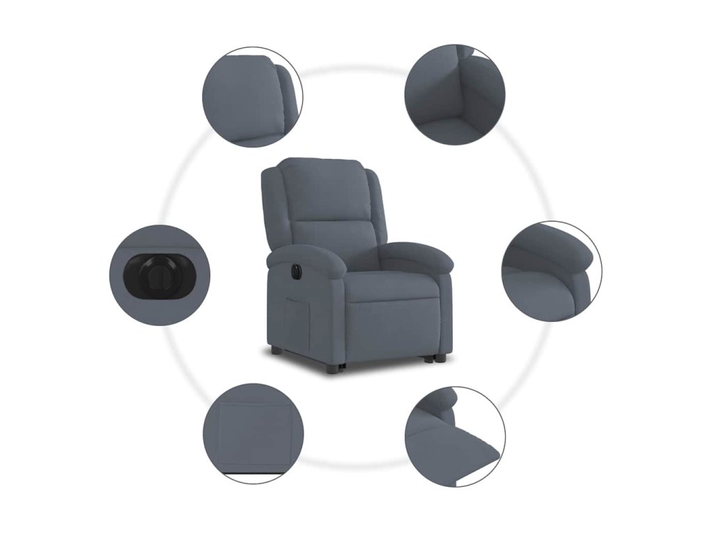 Elektrické zvedací polohovací křeslo tmavě šedé samet 3204323
