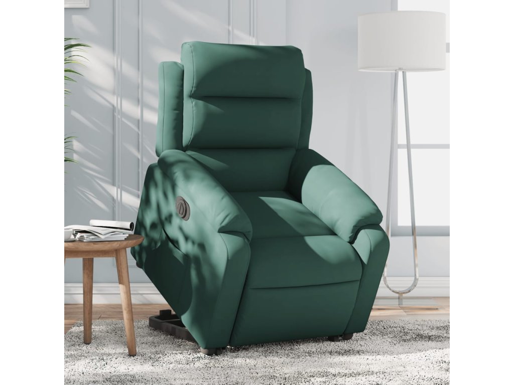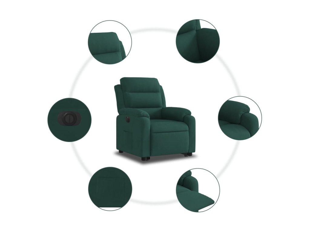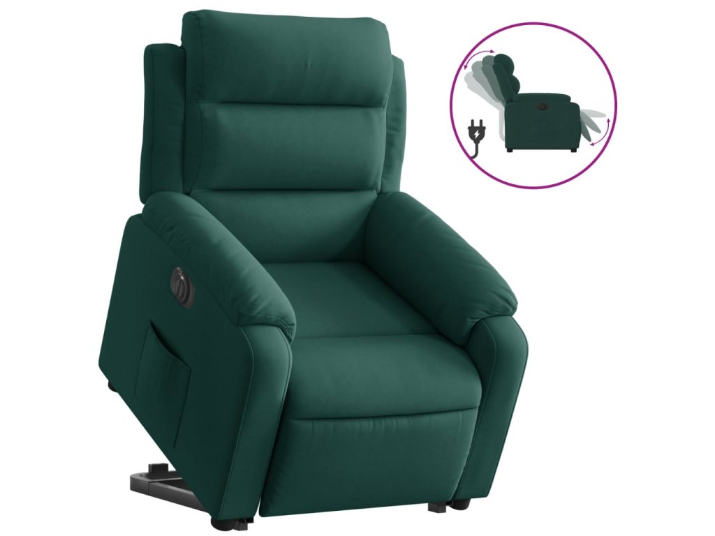 Elektrické zvedací polohovací křeslo tmavě zelené samet 3205116