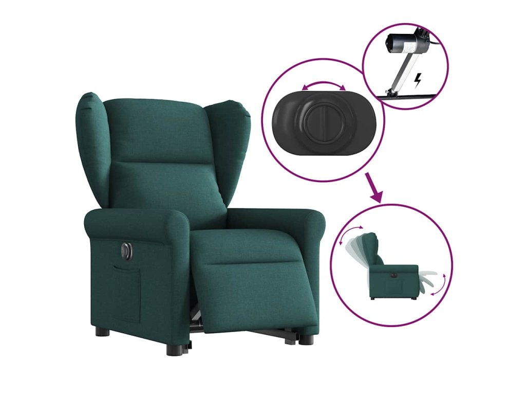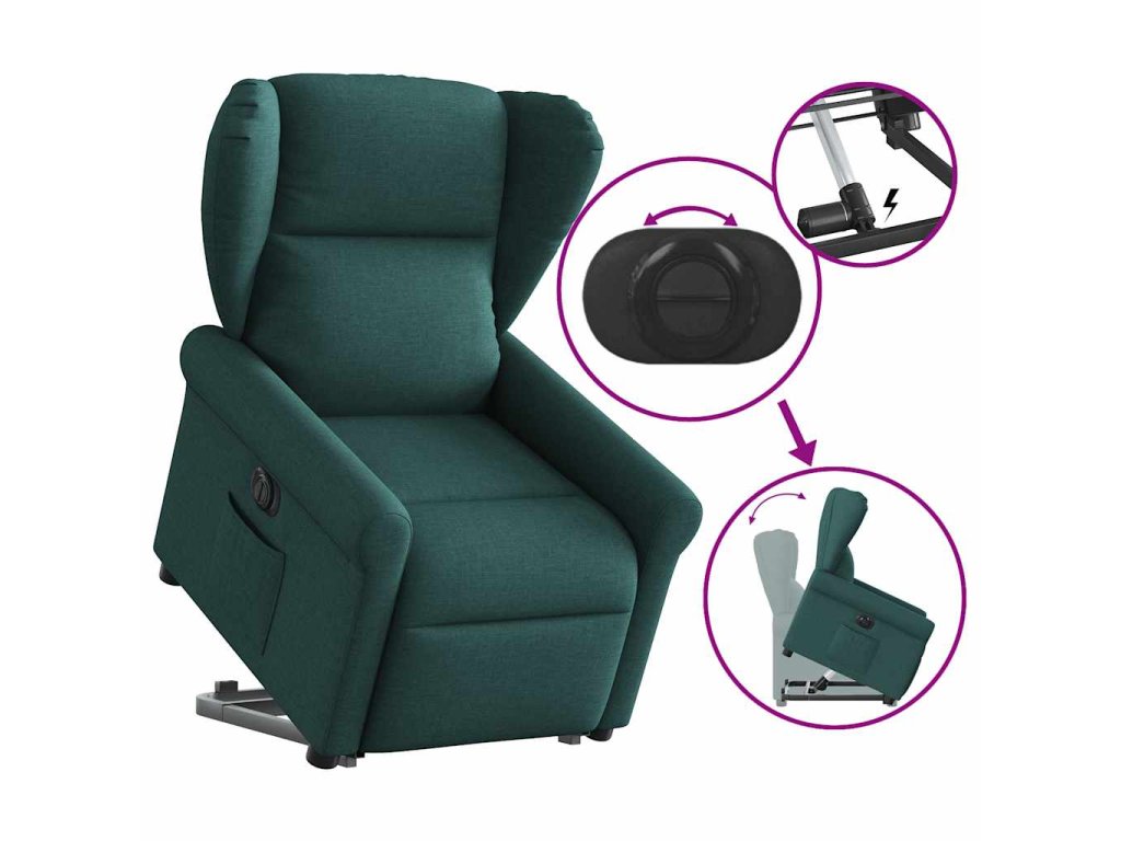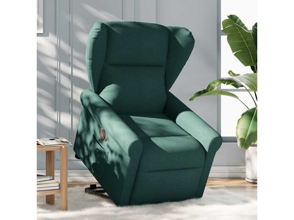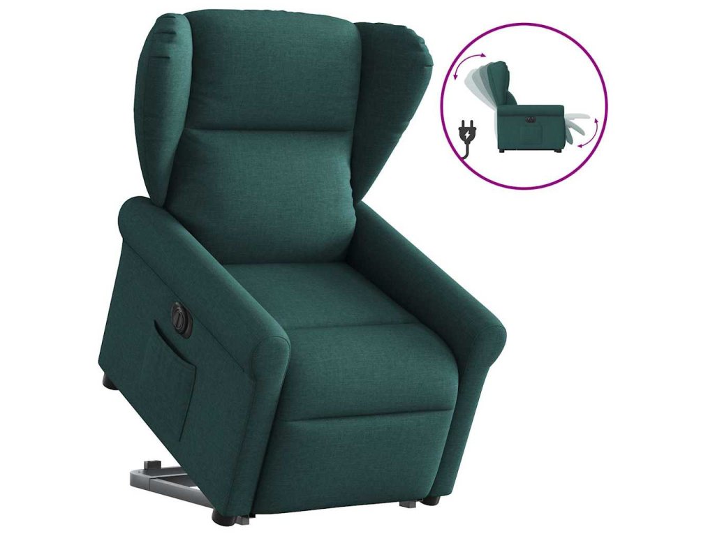 Elektrické zvedací polohovací křeslo tmavě zelené textil 3303400