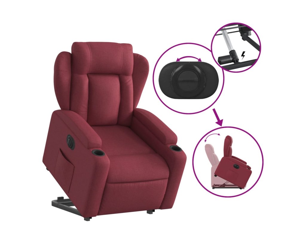 Elektrické zvedací polohovací křeslo vínové textil 3204509