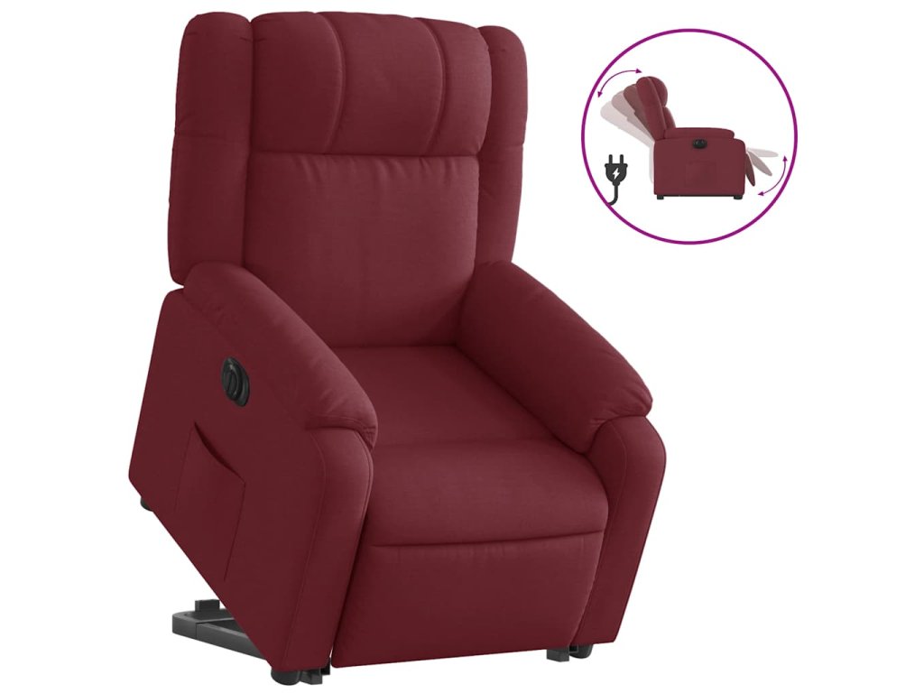 Elektrické zvedací polohovací křeslo vínové textil 3205229