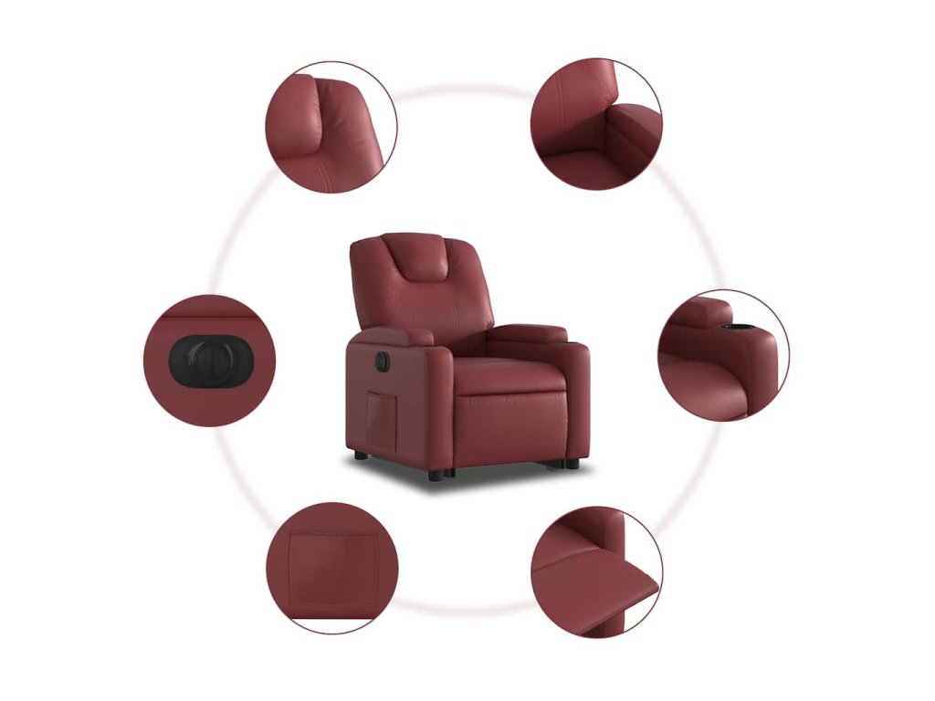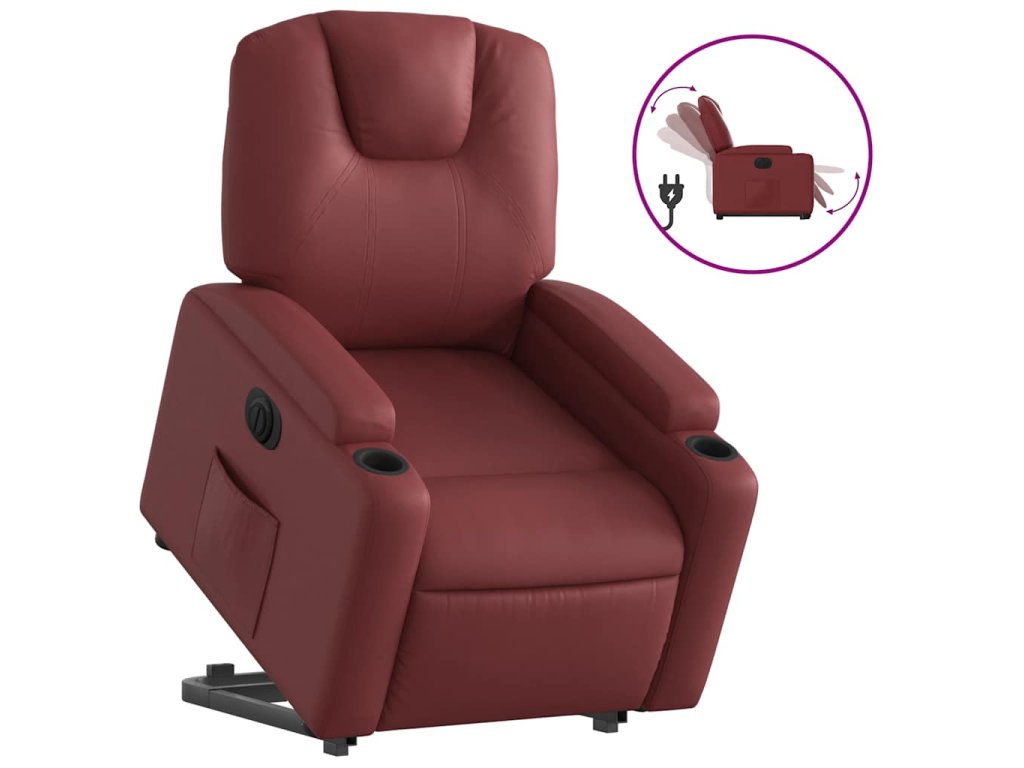 Elektrické zvedací polohovací křeslo vínové umělá kůže 3204448