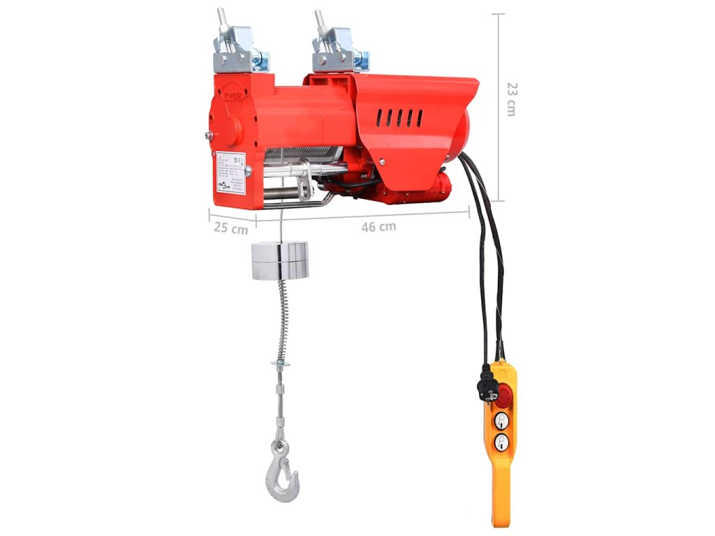 Jeho výkonný a bezúdržbový motor je ideální pro širokou škálu zvedacích prací. Je vyrobený s důrazem na dlouhou životnost, a proto má robustní konstrukci a vylepšenou převodovku. Tento kladkostroj zvedá břemena vysokou rychlostí až 15 m/min s jedním kabelem a 7,5 m/min s dvojitým kabelem, což usnadňuje a zrychluje vaše zvedací práce. Dodává se se 2 extra odolnými zvedacími háky: maximální nosnost až 300 kg s jedním kabelem a 600 kg s dvojitým kabelem. Zvedák se automaticky zastaví, když břemeno dopadne na zem. Je vybavený naváděcím mechanismem pro lano, který předchází uvíznutí kabelu. Tento elektrický kladkostroj je také vybavený nouzovým vypínačem, automatickou brzdou a tepelnou ochranou, které slouží k ochraně vašeho bezpečí během provozování kladkostroje.