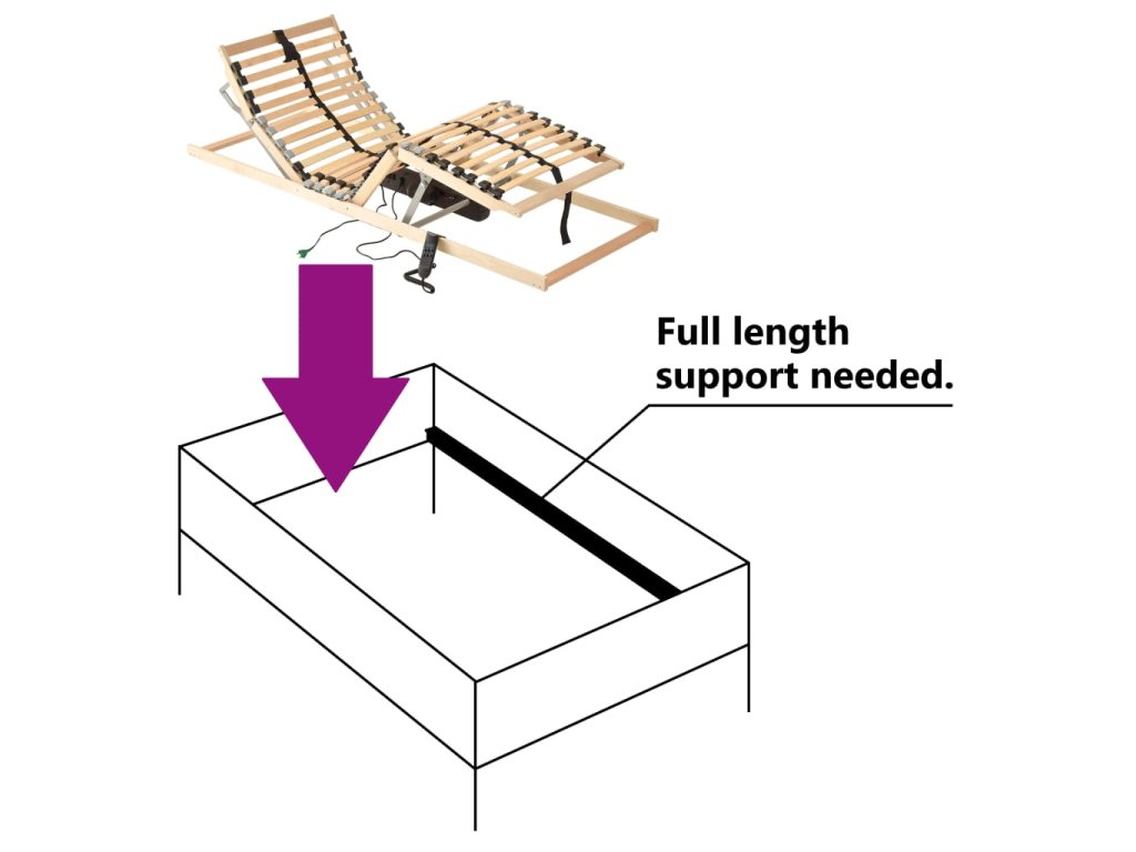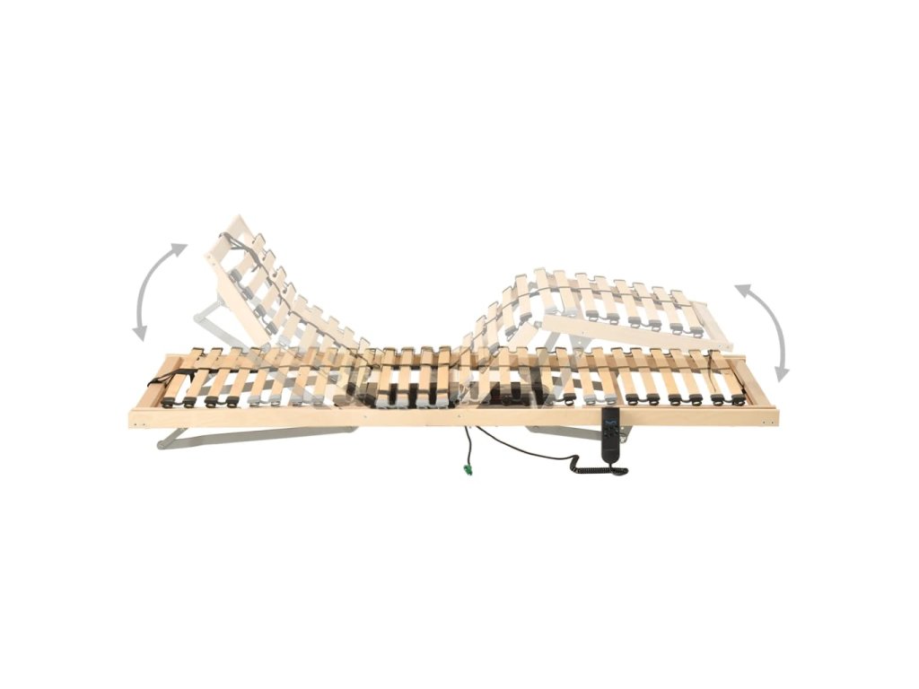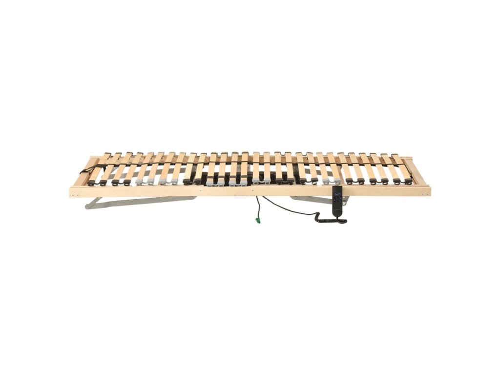 Rošt postele s rámem z masivního bukového dřeva a břízovými lamelami je robustní a odolný. Sedm komfortních zón poskytuje vašemu tělu optimální podporu. Oba konce lamel jsou na místě upevněné gumovými uzávěry SBS pro lepší stabilitu celé konstrukce. S pomocí 4 nastavitelných dvojitých lamel ve středové zóně můžete uzpůsobit pevnost roštu svým potřebám. Oblasti pod hlavou a pod nohami jsou nastavitelné příručním ovladačem pro vaše pohodlí.