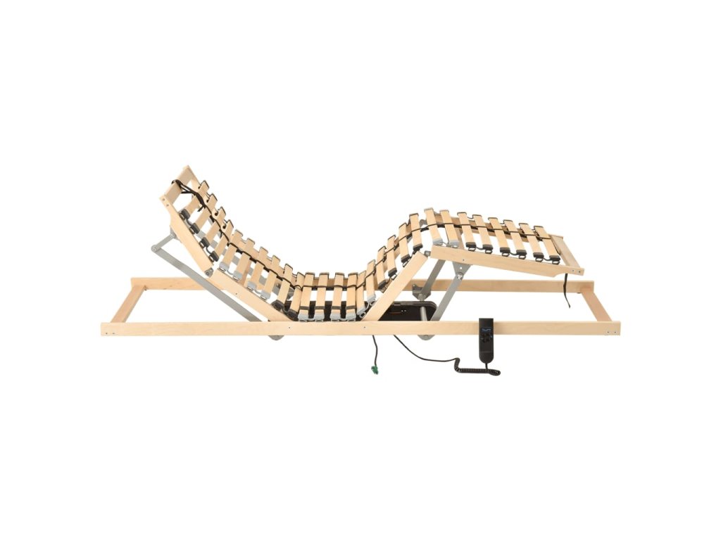 Rošt postele s rámem z masivního bukového dřeva a břízovými lamelami je robustní a odolný. Sedm komfortních zón poskytuje vašemu tělu optimální podporu. Oba konce lamel jsou na místě upevněné gumovými uzávěry SBS pro lepší stabilitu celé konstrukce. S pomocí 4 nastavitelných dvojitých lamel ve středové zóně můžete uzpůsobit pevnost roštu svým potřebám. Oblasti pod hlavou a pod nohami jsou nastavitelné příručním ovladačem pro vaše pohodlí.