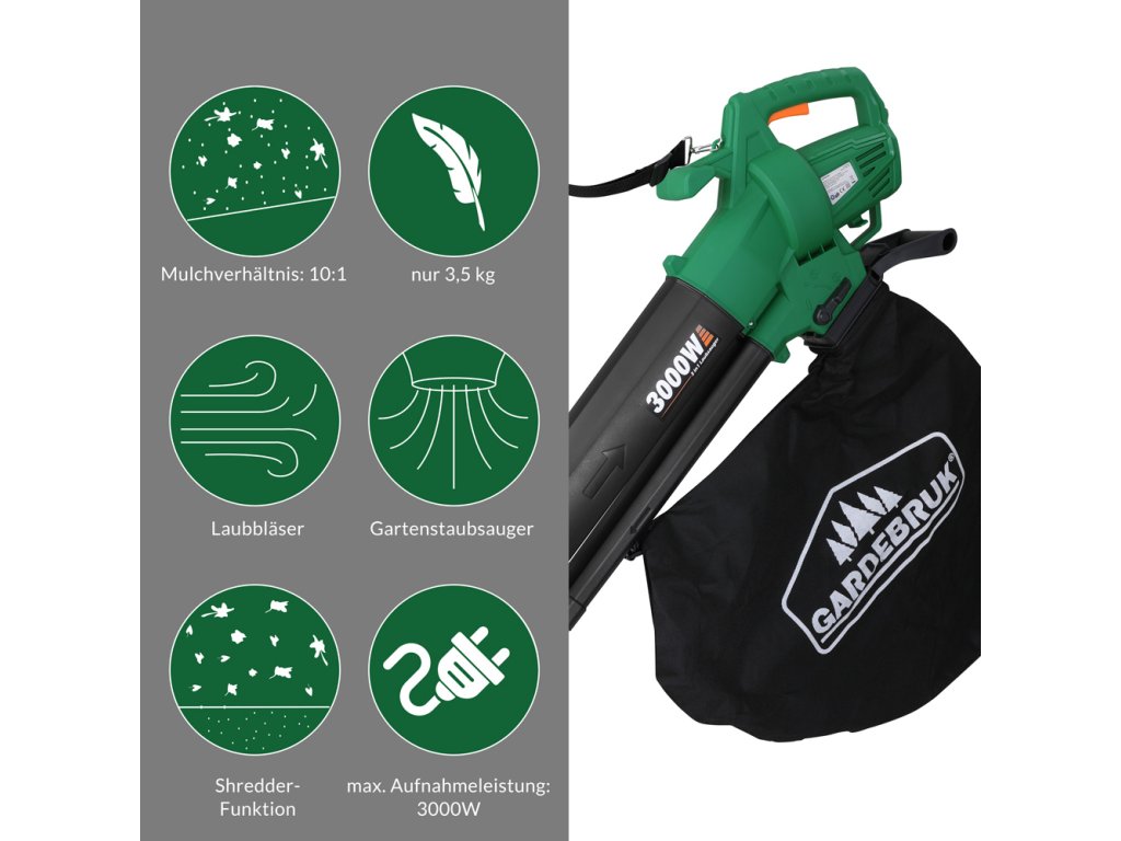 Výkonný zahradní vysavač 3v1 s funkcí foukání, sání a drcení, 3000 W, TÜV certifikace