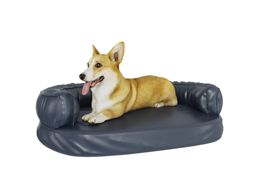 Ergonomický molitanový pelíšek pro psy modrý 88x65cm umělá kůže 171315