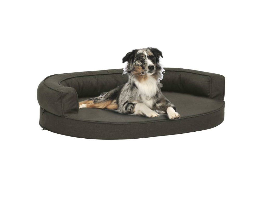Ergonomický pelíšek pro psy 75 x 53 cm lněný vzhled tmavě šedý 171290