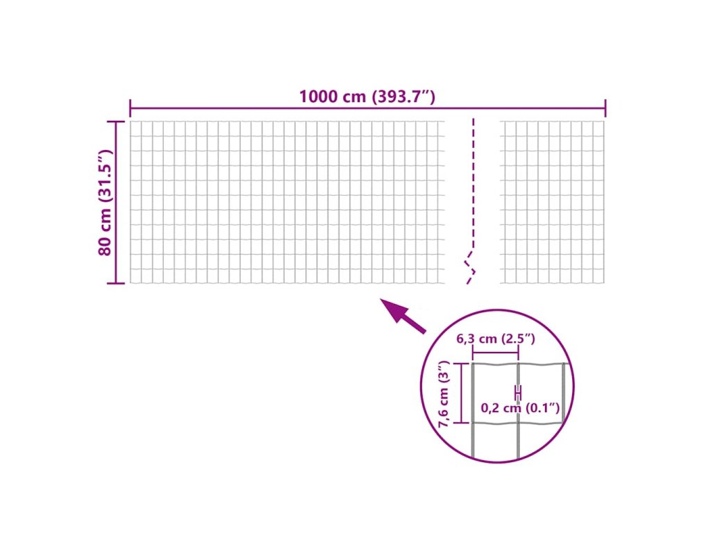 - Průměr drátu: 1,8/2,2 mm (1,8 mm ocelový drát, 2,2 mm včetně PVC potahu)