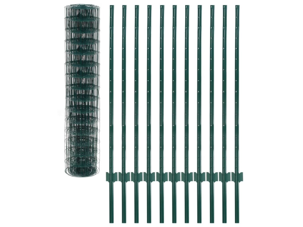 Je vyroben z oceli potažené PVC, má pevnou konstrukci a je odolný vůči povětrnostním vlivům, korozi a UV záření. Tato vysoce kvalitní sada plotů je velmi odolná. Balení obsahuje plot a 11 sloupků.
