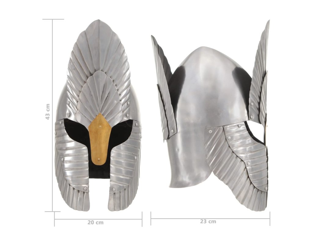Helma je excelentní fantasy rytířská přilba. Je zhotovená z oceli 18. Kombinací historického designu s odolným materiálem vznikla působivá přilba, která dokonale doplní vaši stávající výbavu válečníka. Tato plně nositelná korintská přilba s nánosníkem chrání také nos. Přilba je rovněž působivým výstavním kusem.