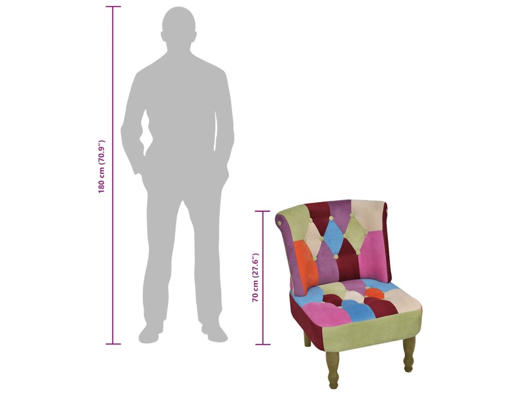 Toto francouzské křeslo s patchworkovým čalouněním v různých veselých barvách je skvělou dekorací a nábytkem vhodným do jakéhokoliv interiéru, jako je ložnice, hala, chodba či obývák. Různobarevné provedení se hodí k mnoha různým stylům domácího dekoru a dodá každé místnosti příjemnou atmosféru. Křeslo, vyrobené z dřevěného rámu, pokrytého látkou a vycpané pohodlnou pěnou, je navrženo pro dlouhá léta užívání.