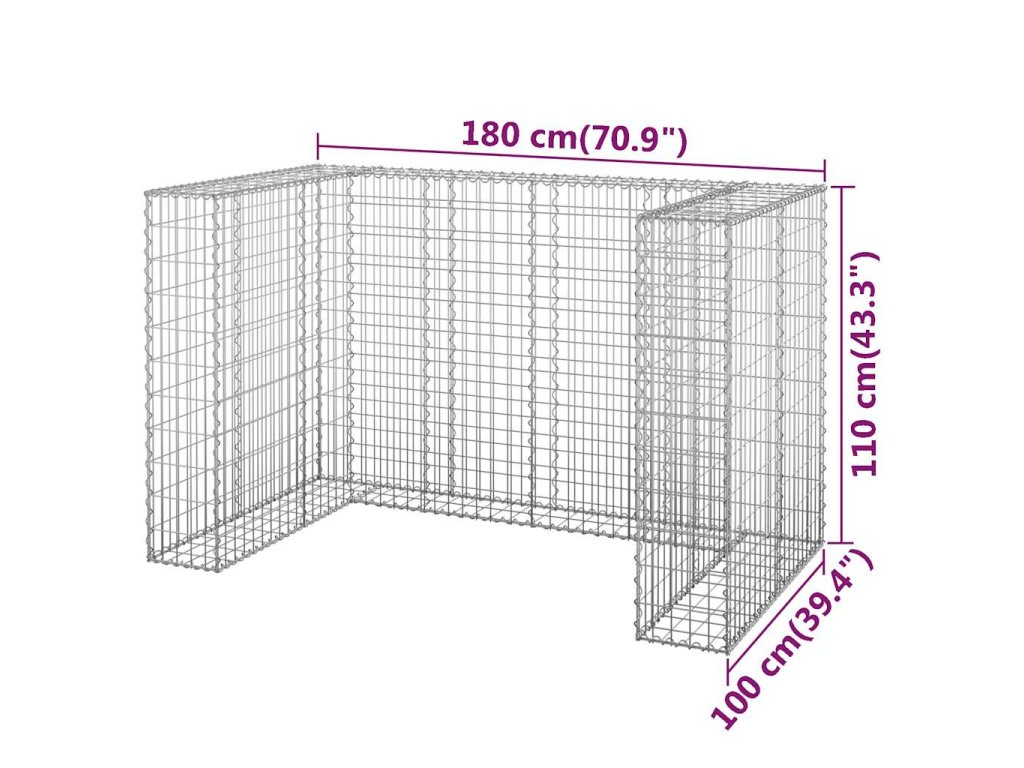 Robustní gabion je určený k naplnění kameny nebo štěrkem. Je vyrobený z nerezové pozinkované oceli, která nepodléhá povětrnostním vlivům a zaručuje, že je gabion pevný a stabilní. Pletivovou mřížku tvoří svislé a vodorovné dráty, které jsou svařené všude, kde se překřižují, takže je gabion mimořádně pevný. Tato gabionová zástěna pojme 2 popelnice.