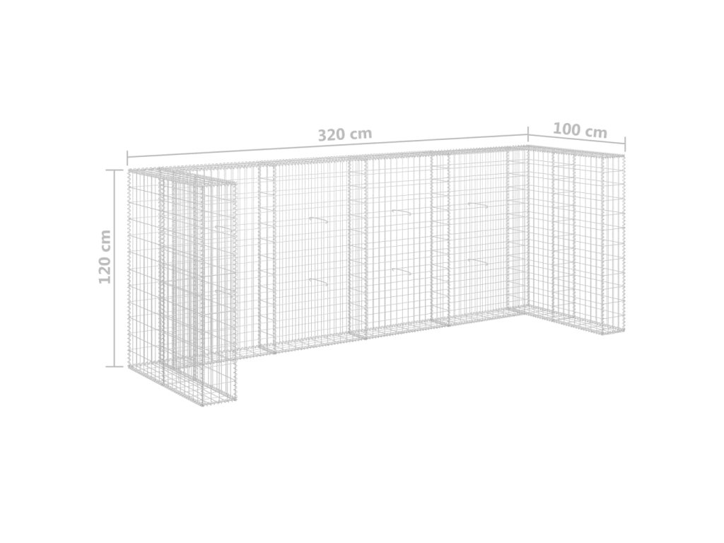 Gabionová zástěna pro popelnice pozinkovaná ocel 320x100x120 cm 145614