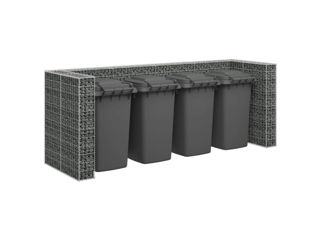 Robustní gabion je určený k naplnění kameny nebo štěrkem. Je vyrobený z nerezové pozinkované oceli, která nepodléhá povětrnostním vlivům a zaručuje, že je gabionové stání pevné a stabilní. Pletivovou mřížku tvoří svislé a vodorovné dráty, které jsou svařené všude, kde se překřižují, takže je gabion mimořádně pevný. Naše gabionové stání pojme 4 popelnice a jeho sestavení je velmi snadné.