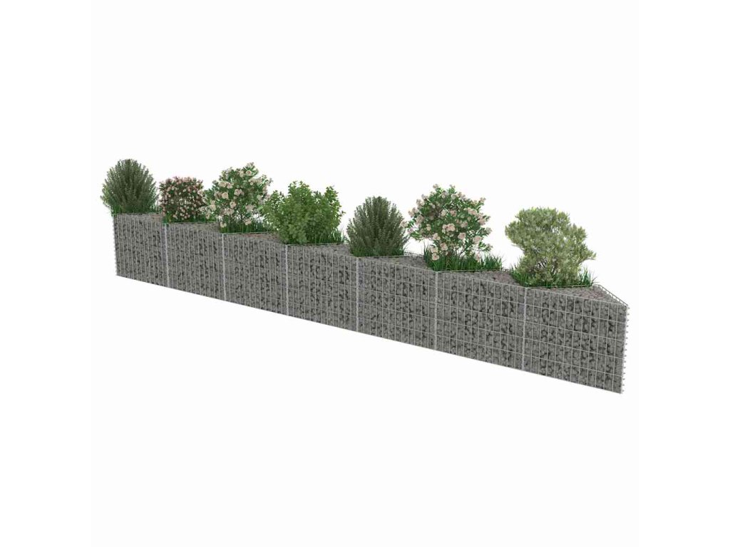 Robustní gabion je určen k tomu, aby byl naplněn kameny nebo štěrkem. Je vyrobený z nerezové pozinkované oceli, která nepodléhá povětrnostním vlivům, čímž zajišťuje výbornou stabilitu a odolnost vyvýšeného záhonu. Síťovou mřížku tvoří svislé a vodorovné dráty, jež jsou svařené všude, kde se kříží, aby byl gabion mimořádně pevný. Můžete si navíc zakoupit více různých modelů a stavením do řady z nich budovat zdi. Gabionovou zeď je snadné sestavit.
