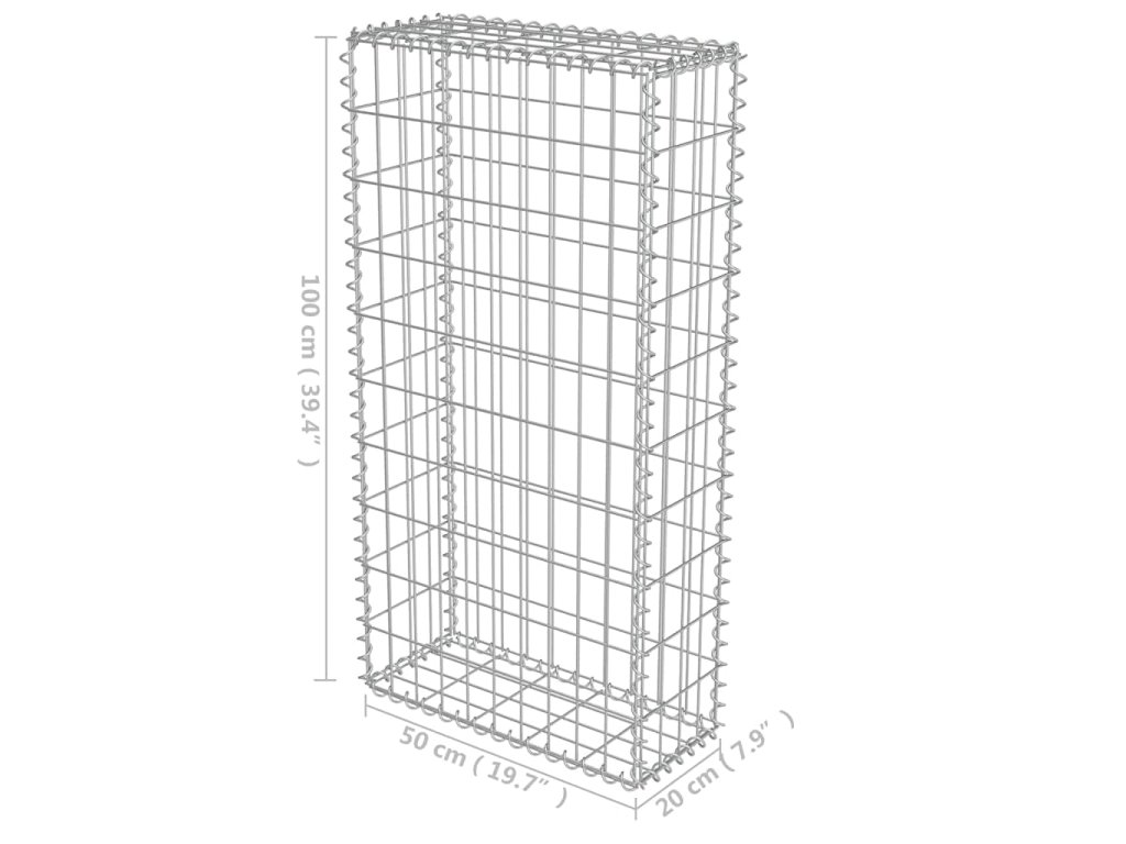 Gabionová zeď s kryty z pozinkované oceli 50 x 20 x 100 cm 143576