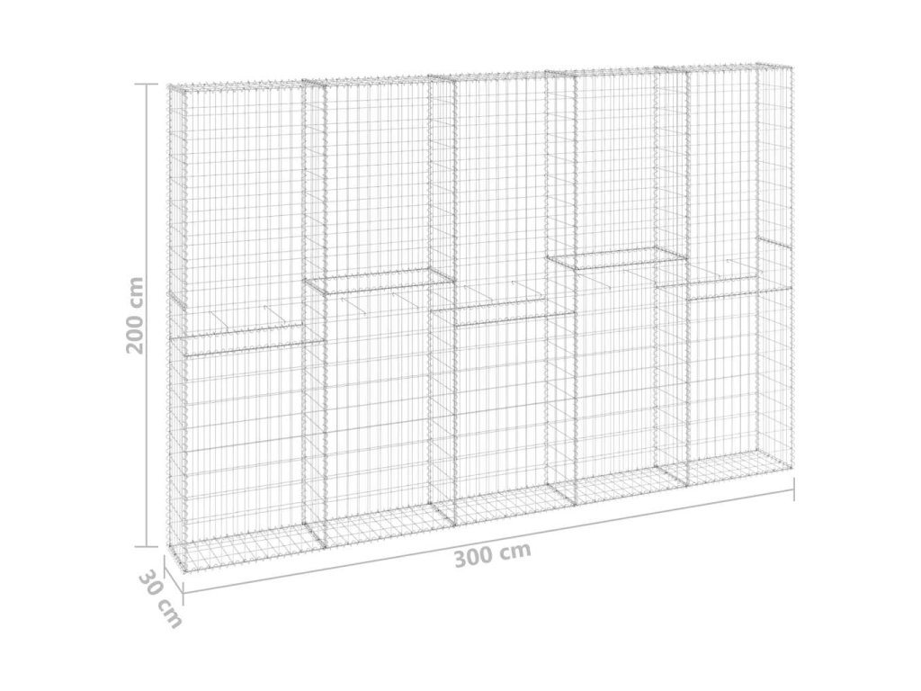 Gabionová zeď s víky pozinkovaná ocel 300 x 30 x 200 cm 147823
