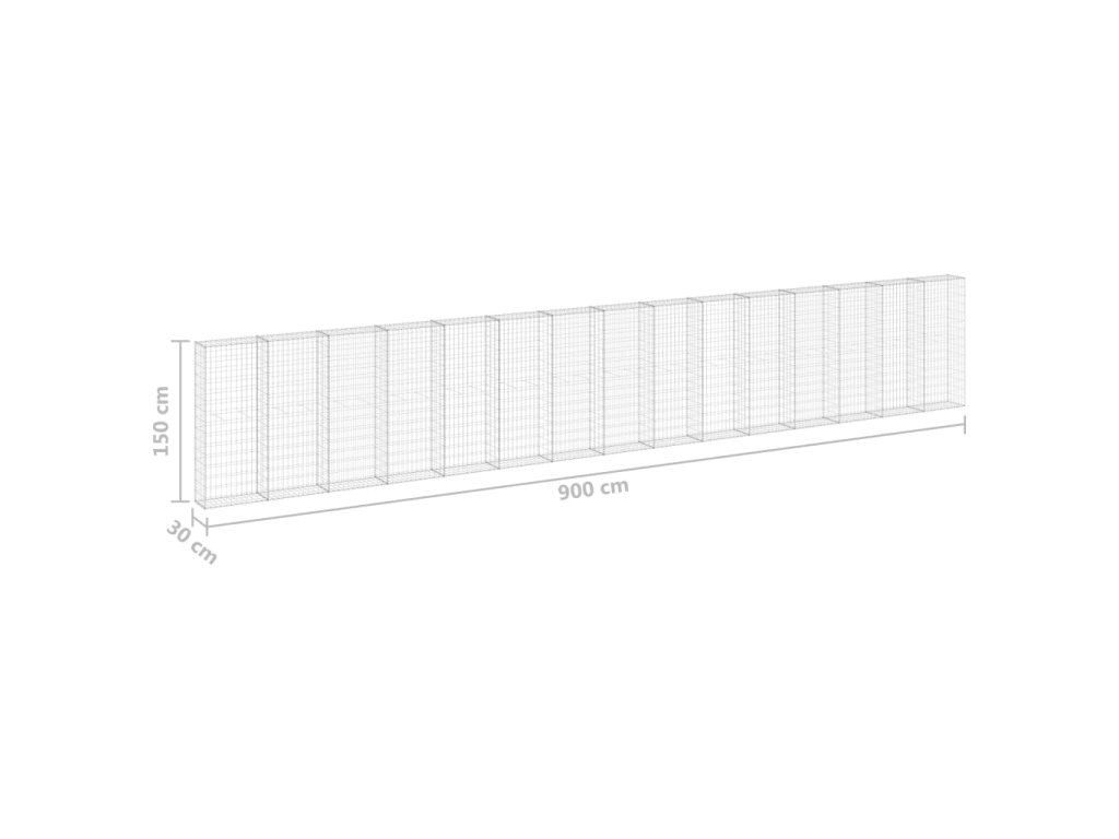 Gabionová zeď s víky pozinkovaná ocel 900 x 30 x 150 cm 147818