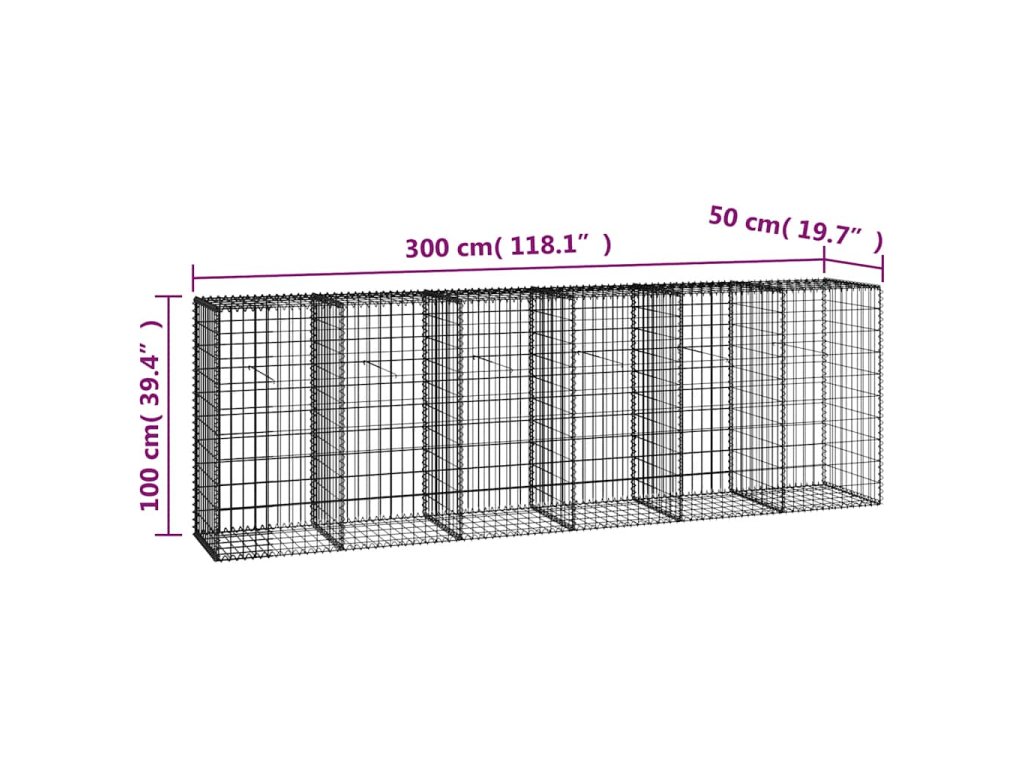 Gabionová zeď s víky z pozinkované oceli 300 x 50 x 100 cm 143592