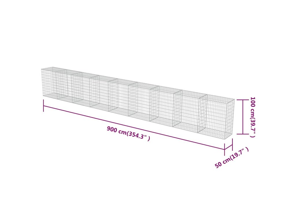 Gabionová zeď s víky z pozinkované oceli 900 x 50 x 100 cm 143588