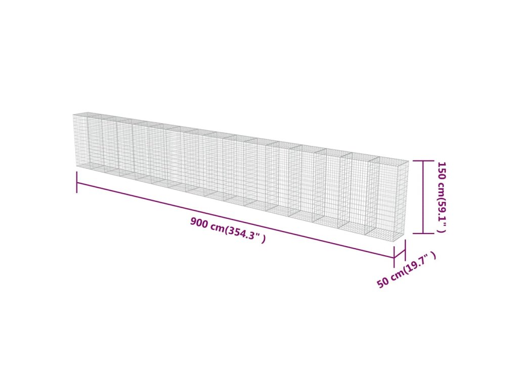 Gabionová zeď s víky z pozinkované oceli 900 x 50 x 150 cm 143589
