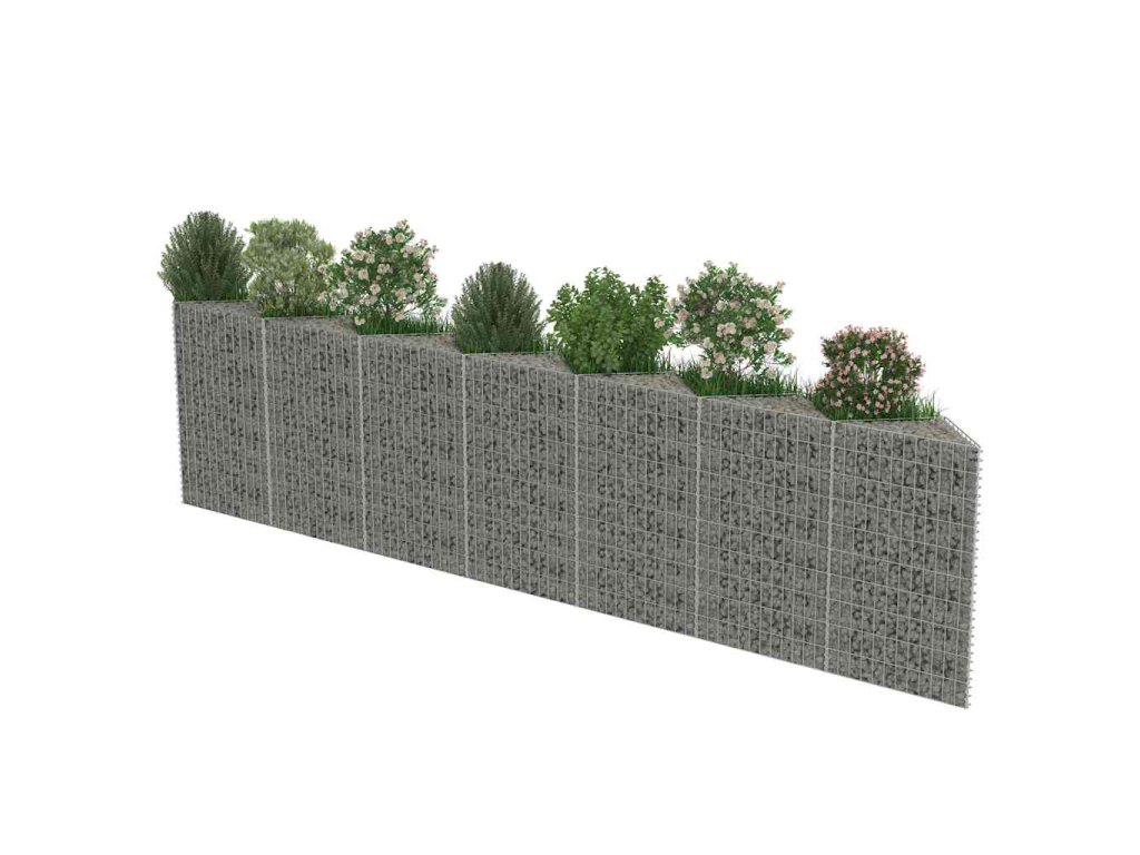 Robustní gabion je určen k tomu, aby byl naplněn kameny nebo štěrkem. Je vyrobený z nerezové pozinkované oceli, která nepodléhá povětrnostním vlivům, čímž zajišťuje výbornou stabilitu a odolnost vyvýšeného záhonu. Síťovou mřížku tvoří svislé a vodorovné dráty, jež jsou svařené všude, kde se kříží, aby byl gabion mimořádně pevný. Můžete si navíc zakoupit více různých modelů a stavením do řady z nich budovat zdi. Gabionovou zeď je snadné sestavit.
