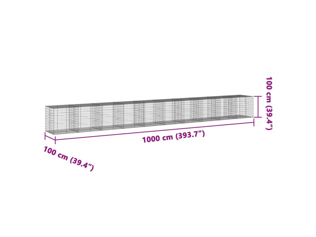 Gabionový koš s víkem 1 000 x 100 x 100 cm pozinkované železo 3295208