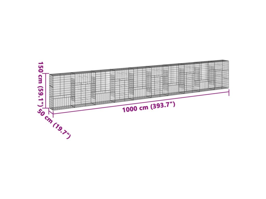 Gabionový koš s víkem 1 000 x 50 x 150 cm pozinkované železo 3295163