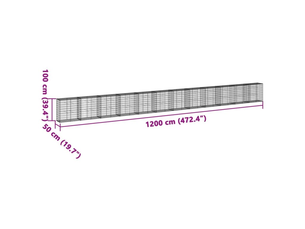 Gabionový koš s víkem 1 200 x 50 x 100 cm pozinkované železo 3295153