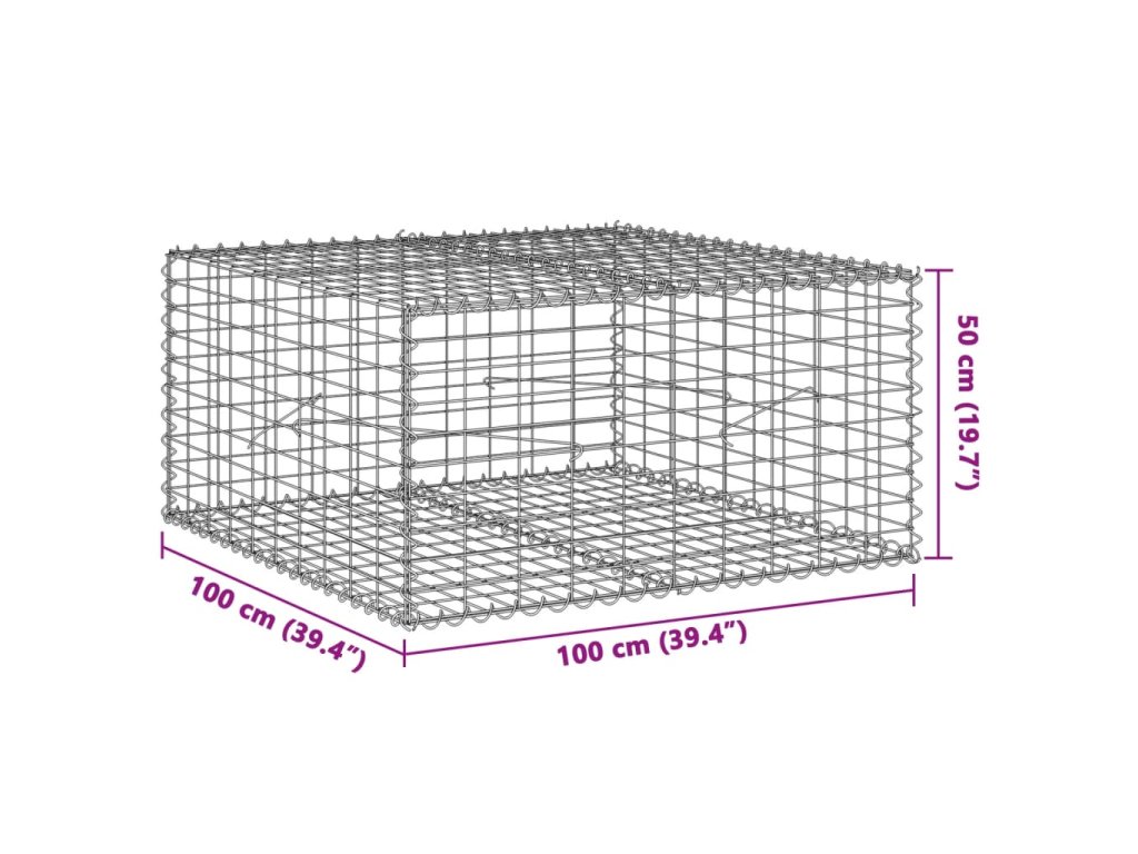 Gabionový koš s víkem 100 x 100 x 50 cm pozinkované železo 3295178