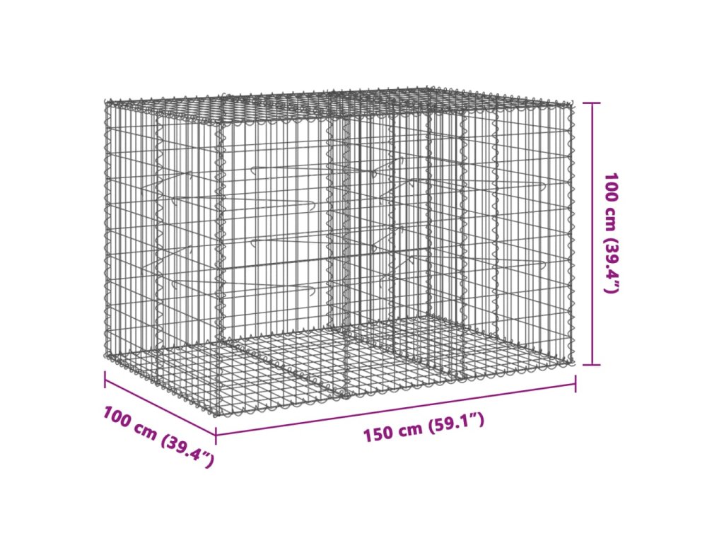 Gabionový koš s víkem 150 x 100 x 100 cm pozinkované železo 3295191