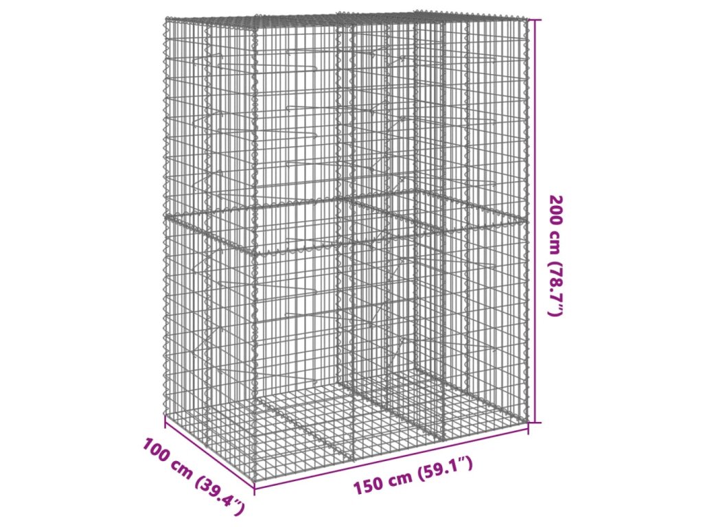 Gabionový koš s víkem 150 x 100 x 200 cm pozinkované železo 3295226
