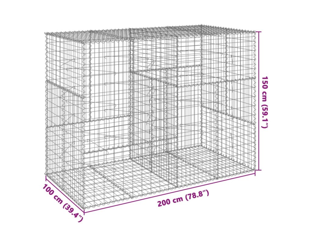 Gabionový koš s víkem 200 x 100 x 150 cm pozinkované železo 3295214