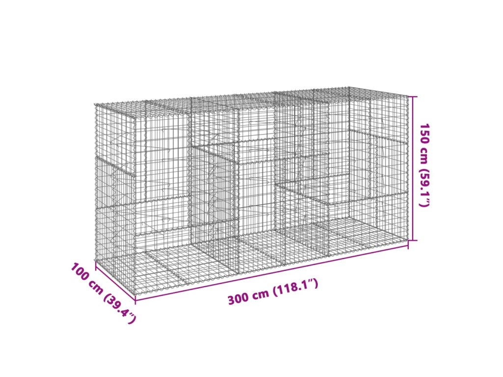 Gabionový koš s víkem 300 x 100 x 150 cm pozinkované železo 3295215