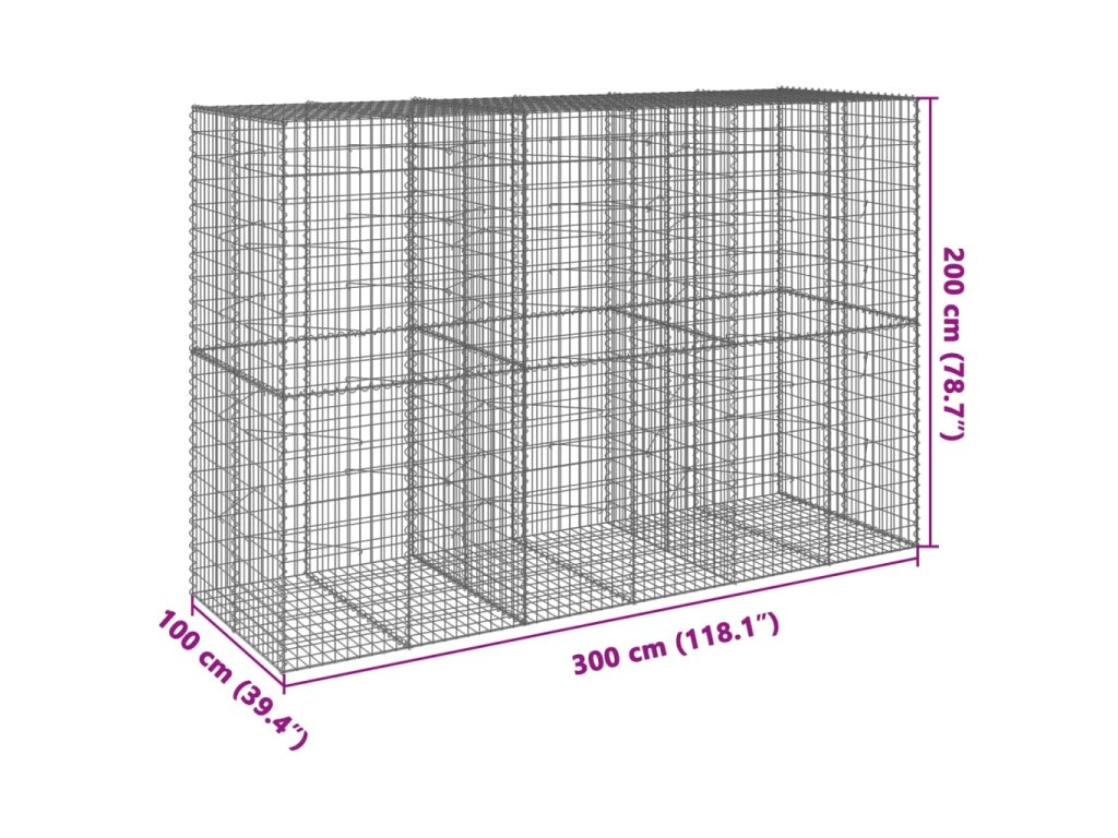 Gabionový koš s víkem 300 x 100 x 200 cm pozinkované železo 3295229