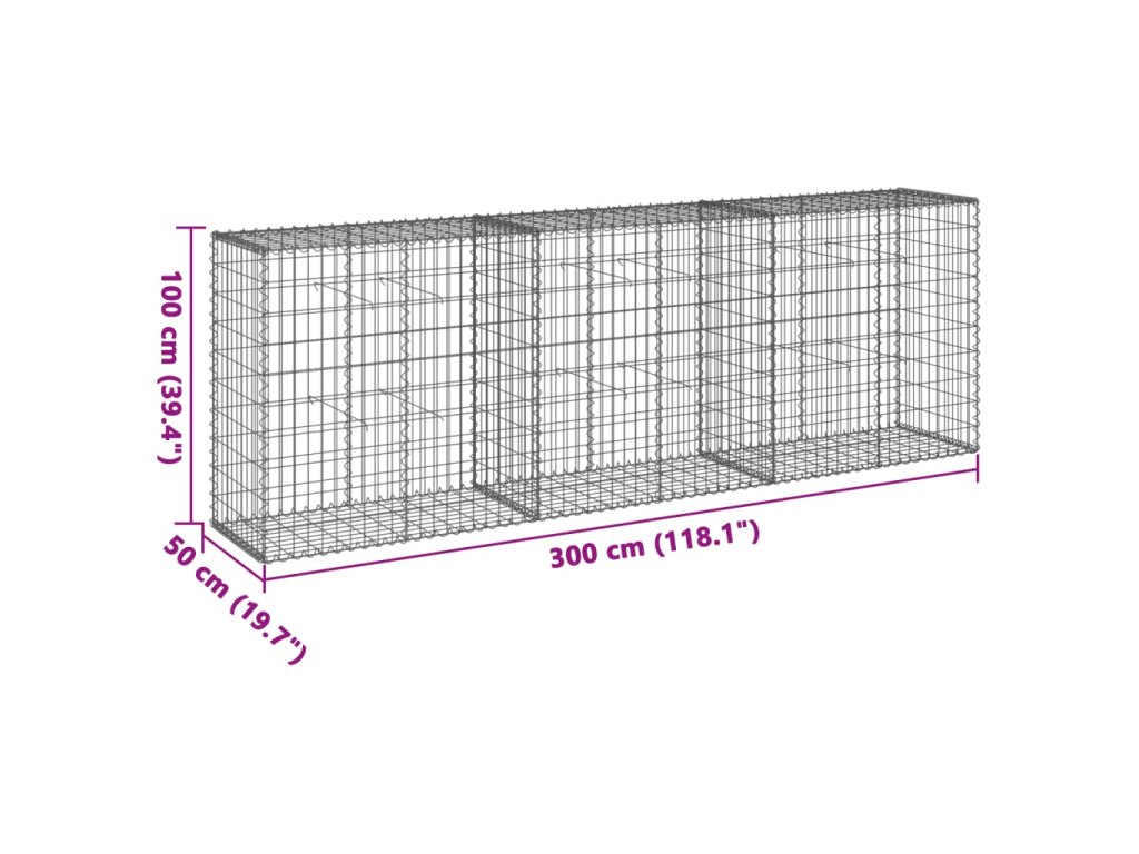 Gabionový koš s víkem 300 x 50 x 100 cm pozinkované železo 3295144