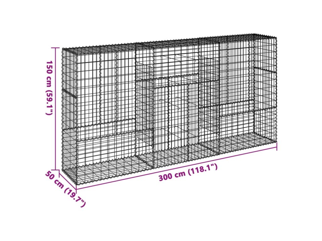 Gabionový koš s víkem 300 x 50 x 150 cm pozinkované železo 3295156