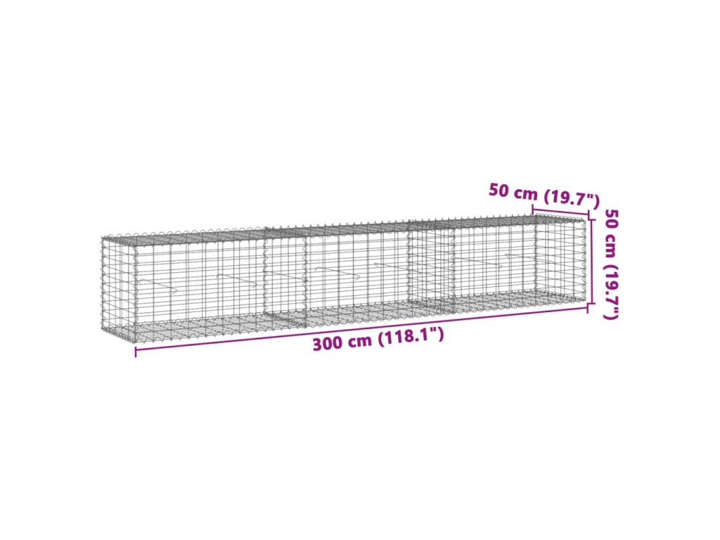 Gabionový koš s víkem 300 x 50 x 50 cm pozinkované železo 3295134