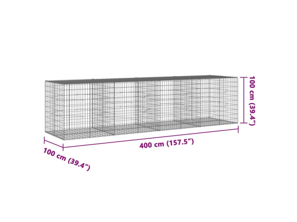 Gabionový koš s víkem 400 x 100 x 100 cm pozinkované železo 3295196