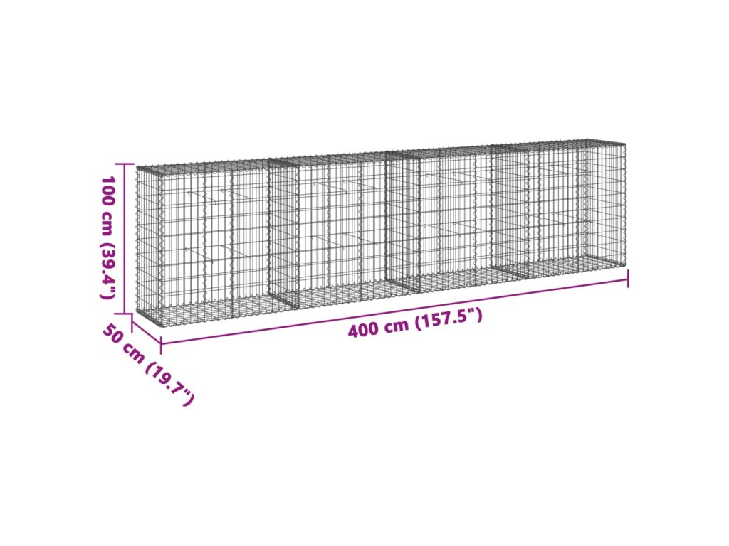 Gabionový koš s víkem 400 x 50 x 100 cm pozinkované železo 3295145