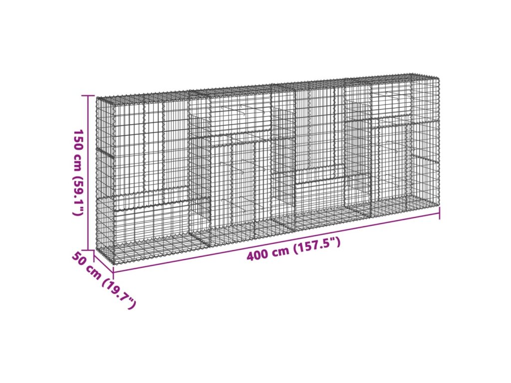 Gabionový koš s víkem 400 x 50 x 150 cm pozinkované železo 3295157