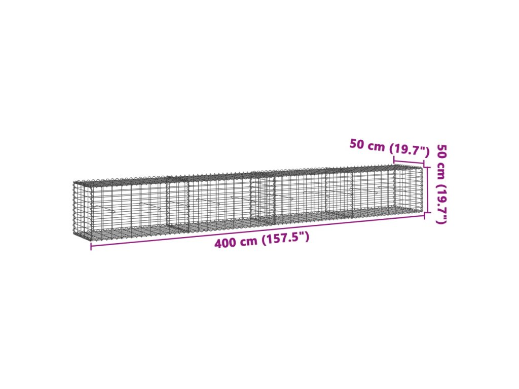 Gabionový koš s víkem 400 x 50 x 50 cm pozinkované železo 3295135
