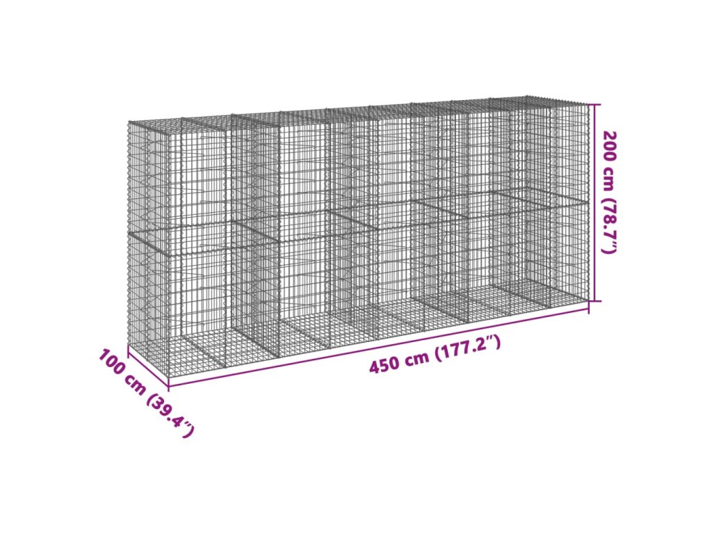 Gabionový koš s víkem 450 x 100 x 200 cm pozinkované železo 3295232